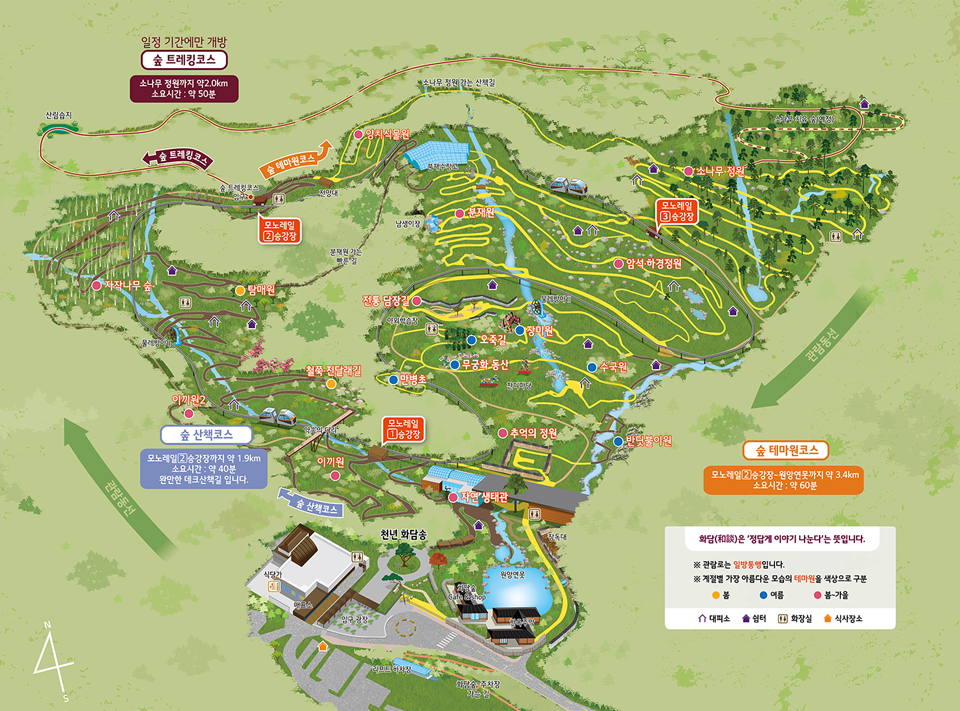 지정 산책로 이용, 쓰레기 분리배출, 모노레일 안전 준수, 반려동물 제한 등 방문 전 반드시 안내사항 확인이 필요합니다.