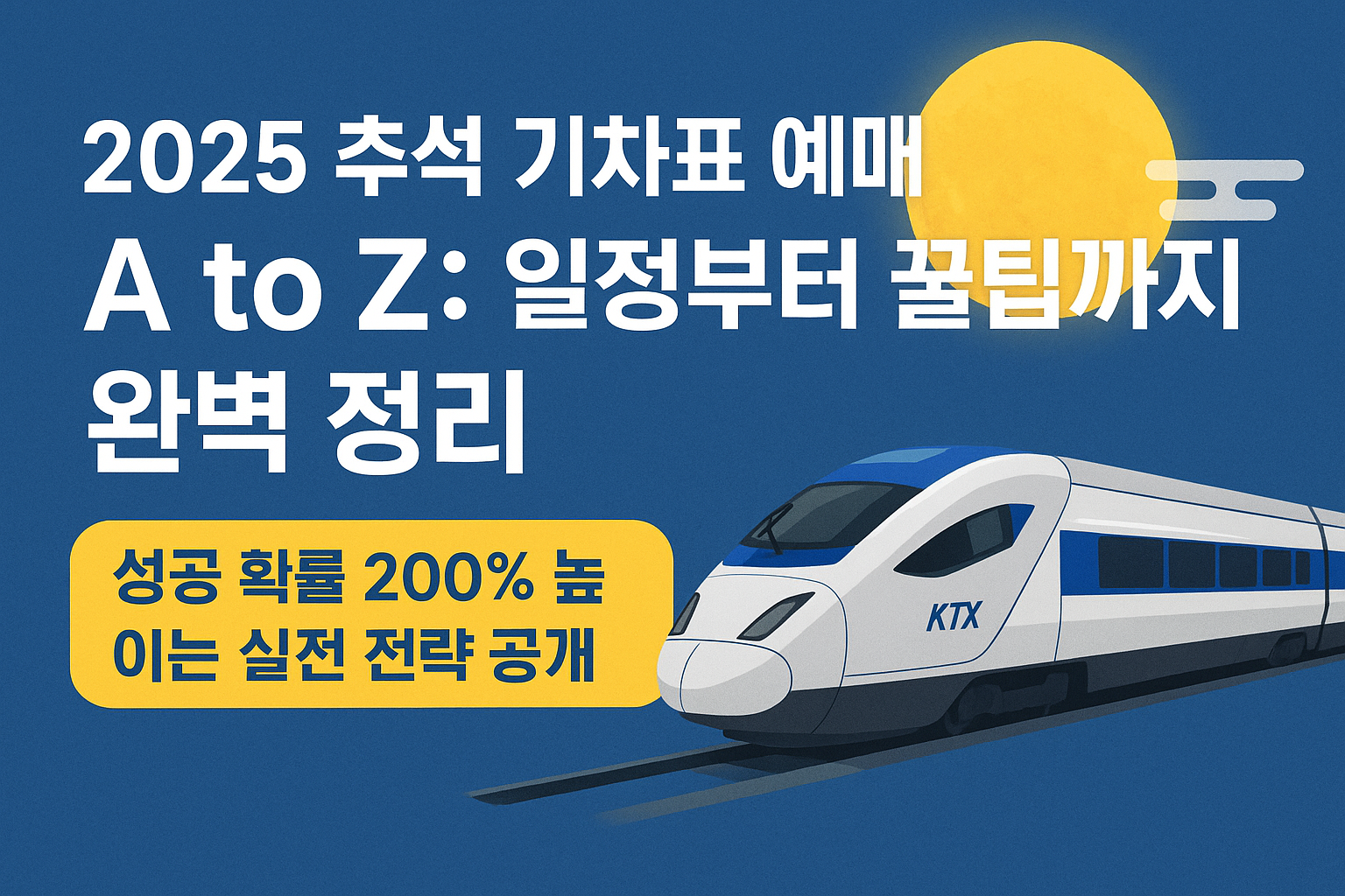 🚆 추석 기차표 예매는 해마다 전쟁입니다. 몇 초 차이로 원하는 시간대를 놓치기도 하죠. 2025 추석 기차표 예매 일정부터 성공 확률을 높이는 꿀팁까지 A to Z를 정리했습니다.