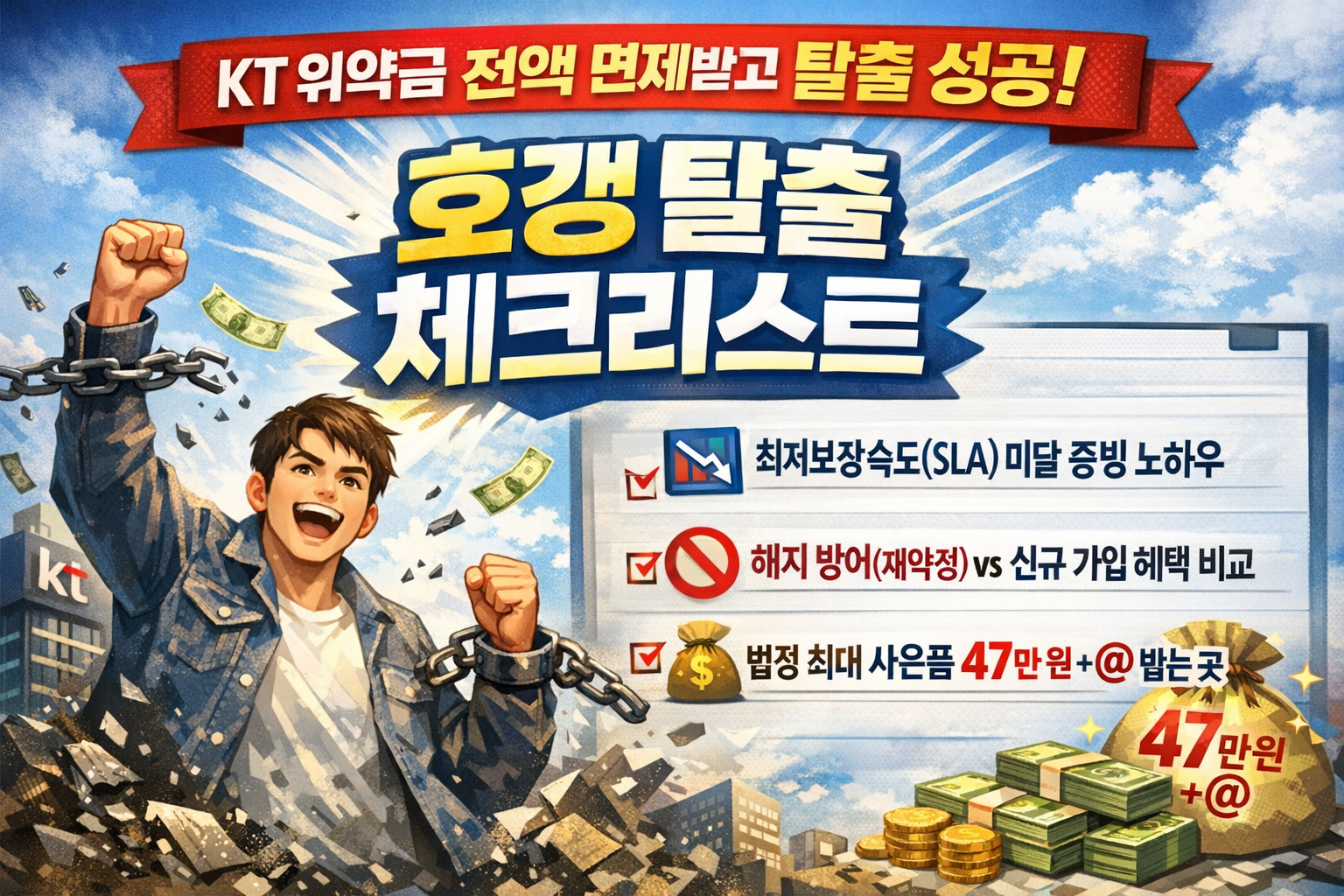 많은 분들이 느린 속도와 불안정한 연결 때문에 스트레스를 받으면서도, 이놈의 '위약금' 폭탄이 무서워 울며 겨자 먹기로 KT를 계속 사용하고 계십니다. 하지만 그거 아시나요? 통신사의 귀책사유(품질 저하 등)를 입증하거나 특정 정책을 활용하면 위약금 한 푼 내지 않고 당당하게 해지할 수 있습니다.