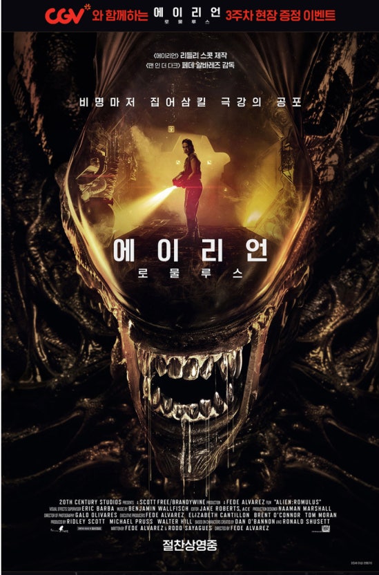 ‘에이리언: 로물루스’는 오리지널 ‘에이리언’ 시리즈의 정수와 현대적 연출을 결합한 SF·공포 영화로, 청년들이 더 나은 미래를 꿈꾸며 도전하는 과정에서 로물루스 기지에서 에이리언의 무자비한 위협을 마주하며 생존을 도모하는 이야기를 그리고 있습니다. 시리즈의 팬이라면 필수적으로 주목할 만한 작품입니다.
