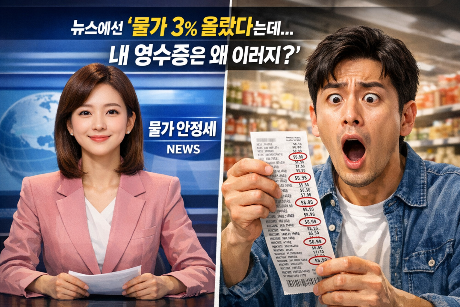 최근 대형 마트나 전통시장에 가서 장을 본 적이 있으신가요? 5만 원짜리 지폐 한 장을 들고 가도 막상 장바구니에 담을 수 있는 물건은 몇 개 되지 않습니다. 사과 몇 알, 대파 한 단, 계란 한 판을 담으면 지갑이 텅 비어버리는 것이 현실입니다. 그런데 저녁 뉴스를 보면 "소비자물가 상승률이 3%대로 둔화되며 안정세에 접어들었다"는 보도가 심심치 않게 나옵니다.