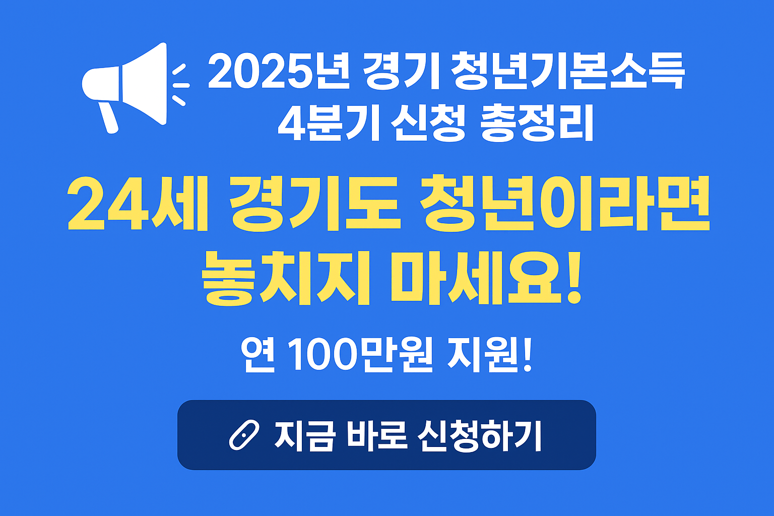 24세 경기도 청년이라면 연간 최대 100만 원을 받을 수 있는 좋은 기회입니다. 2025년 4분기 신청은 10월 15일 ~ 11월 24일 신청기간이니 다가오는 기간 전에 신청자격, 거주요건, 제출서류 등을 미리 점검해 두는 것이 중요합니다. 신청만 잘하면 비교적 간단하게 지원받을 수 있는 제도이므로, 놓치지 마시고 꼭 챙기시길 바랍니다!
