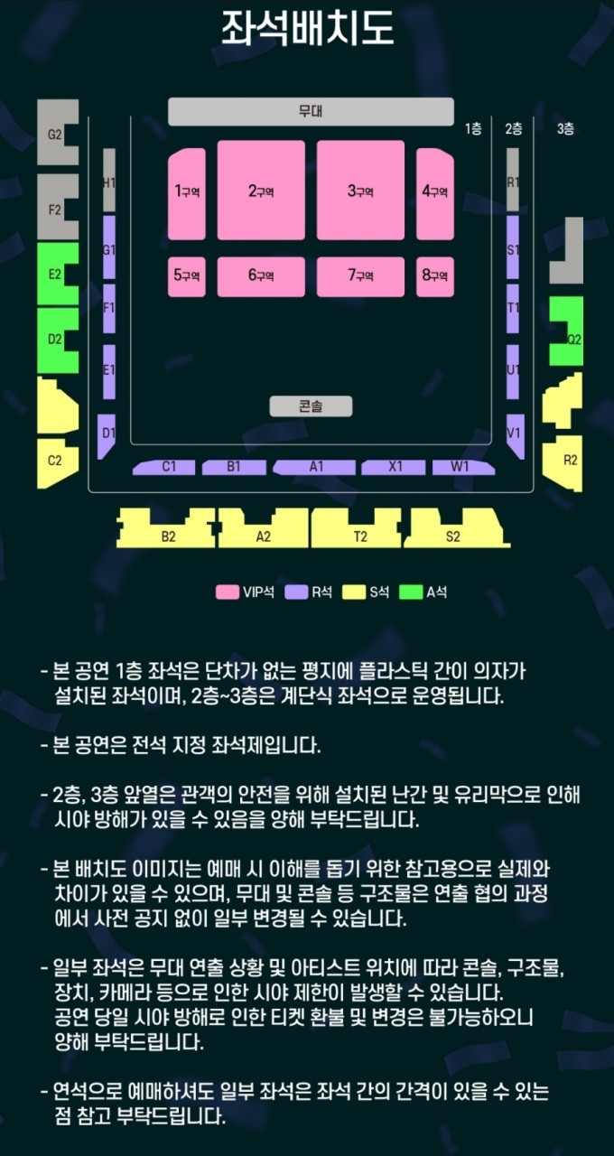 대구 EXCO 공연장은 오디토리움형 구조로, 무대와 객석의 거리가 비교적 가깝고, 음향 설계가 우수합니다. S석, A석, R석 등 좌석 등급별로 가격이 상이하며, 일부 좌석은 시야제한이 있을 수 있습니다.