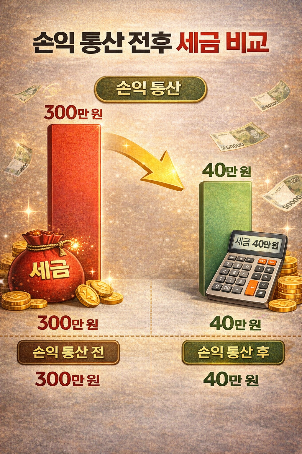 주식을 하다 보면 오르는 종목도 있지만, 물려있는 파란 불 종목도 있기 마련입니다. 아이러니하게도 세금을 줄일 때는 이 '마이너스 종목'이 효자 노릇을 합니다. 양도소득세는 1년간의 '총수익'과 '총손실'을 합산(통산)하여 계산하기 때문입니다. 이를 손익 통산(Tax Loss Harvesting)이라고 부릅니다.