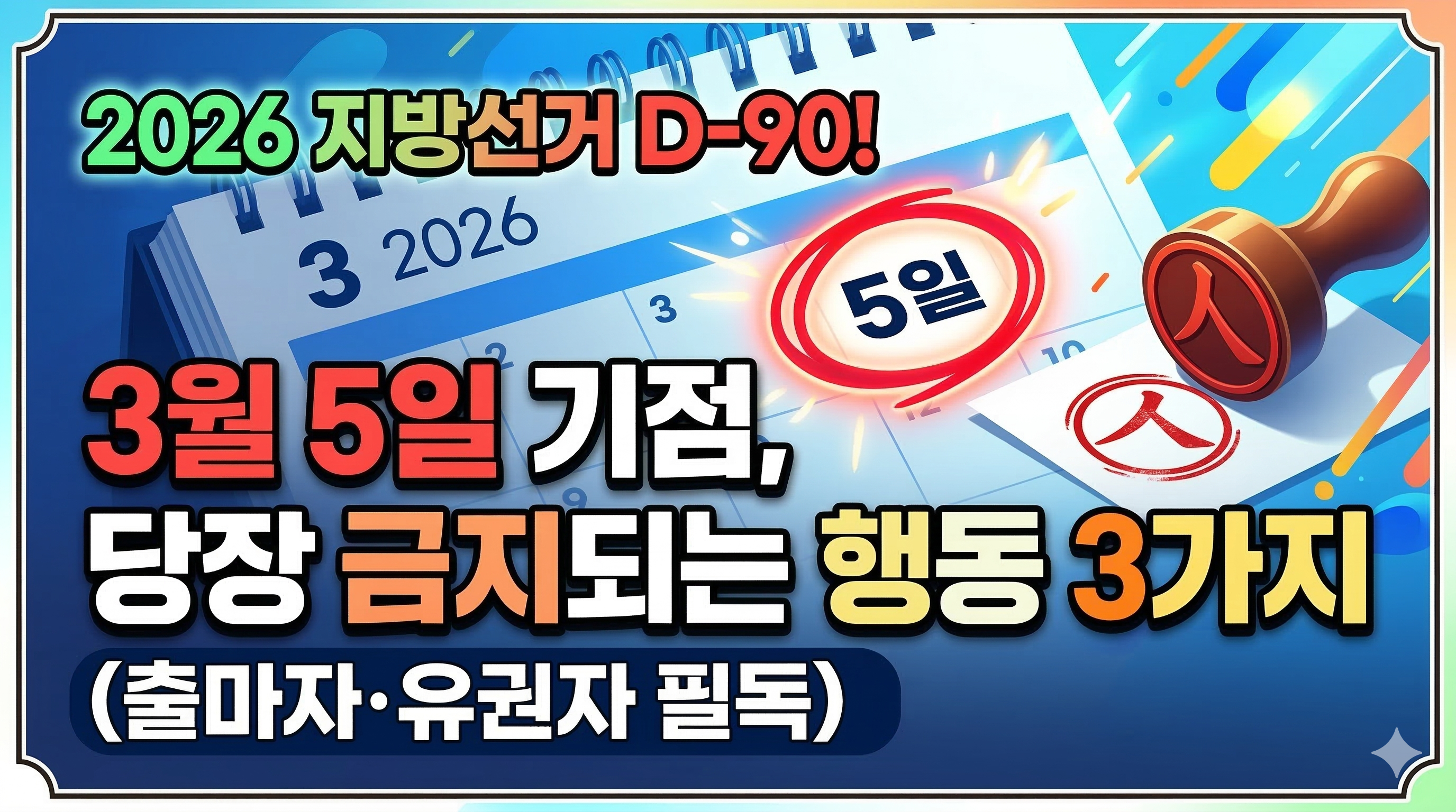 - 선거일 전 90일인 '3월 5일'부터 출판기념회 금지 및 공무원 사직 등 핵심 규제가 시작됩니다.