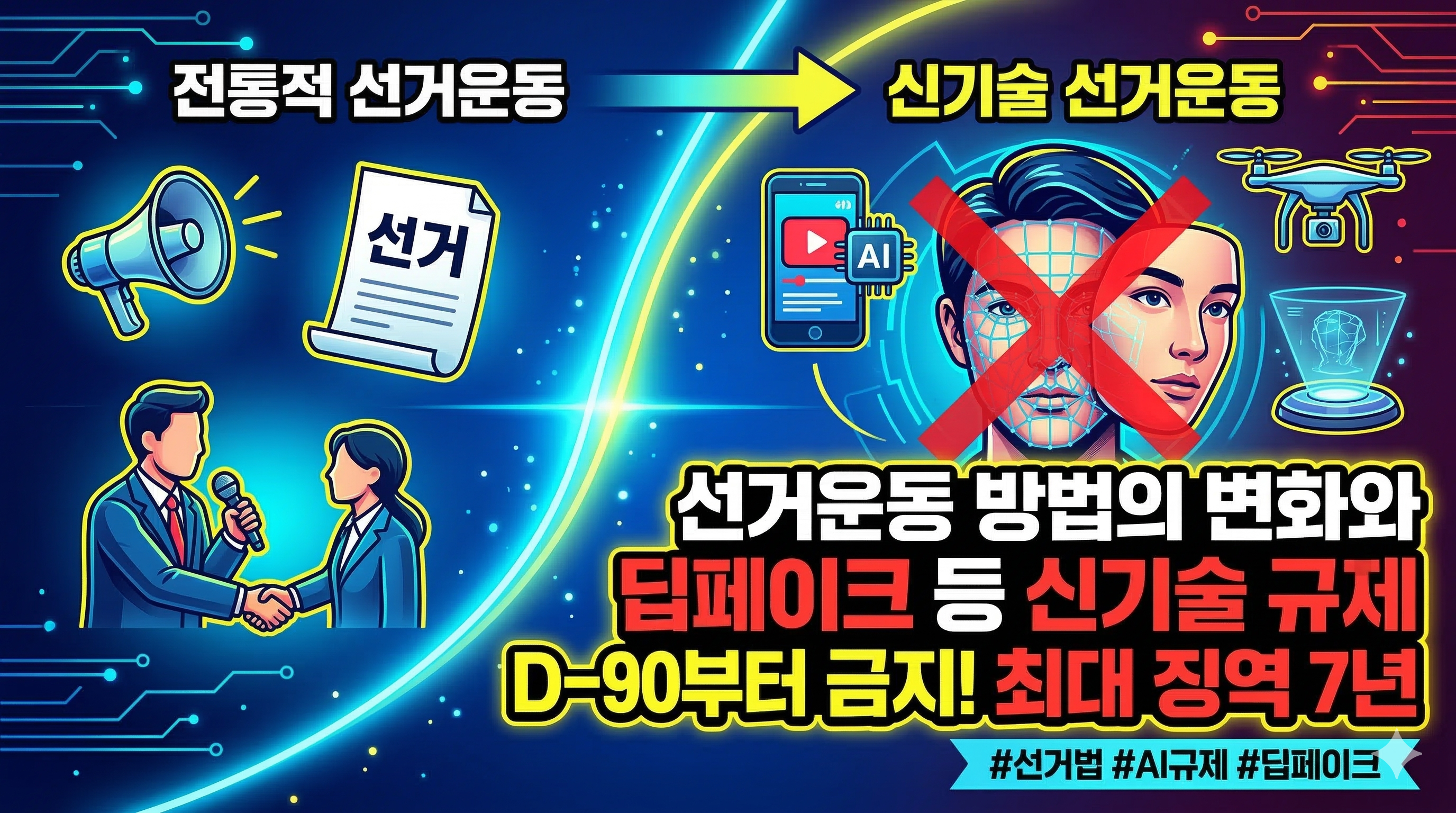 - 딥페이크 선거운동 금지 등 유권자와 출마자 모두가 알아야 할 D-90 선거법 주의사항을 완벽 정리했습니다.