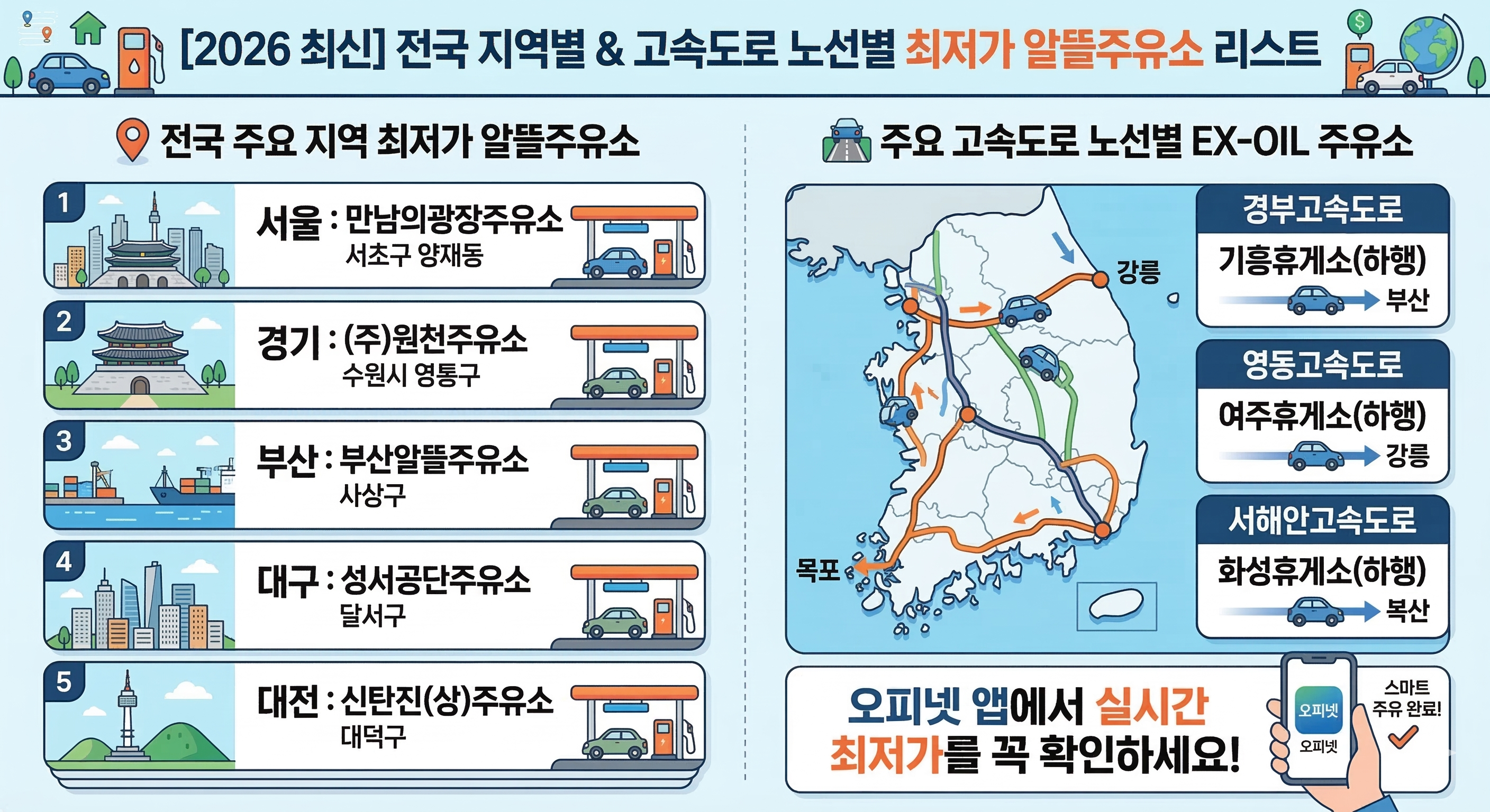 📍 [작성일 기준] 전국 주요 지역별 최저가 알뜰주유소 리스트