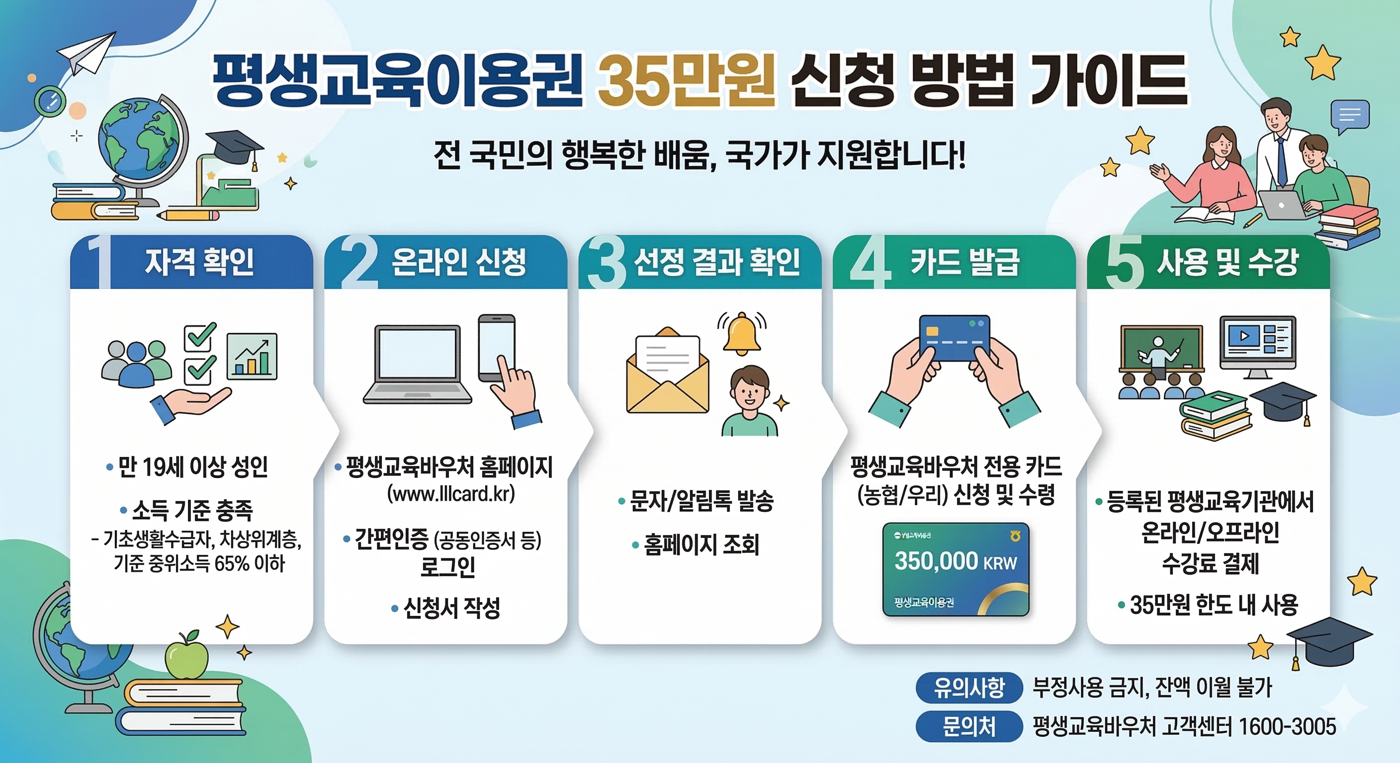 - 2026년 평생교육바우처는 기본 35만 원, 우수 이용자 선정 시 최대 70만원의 교육비를 지원합니다.