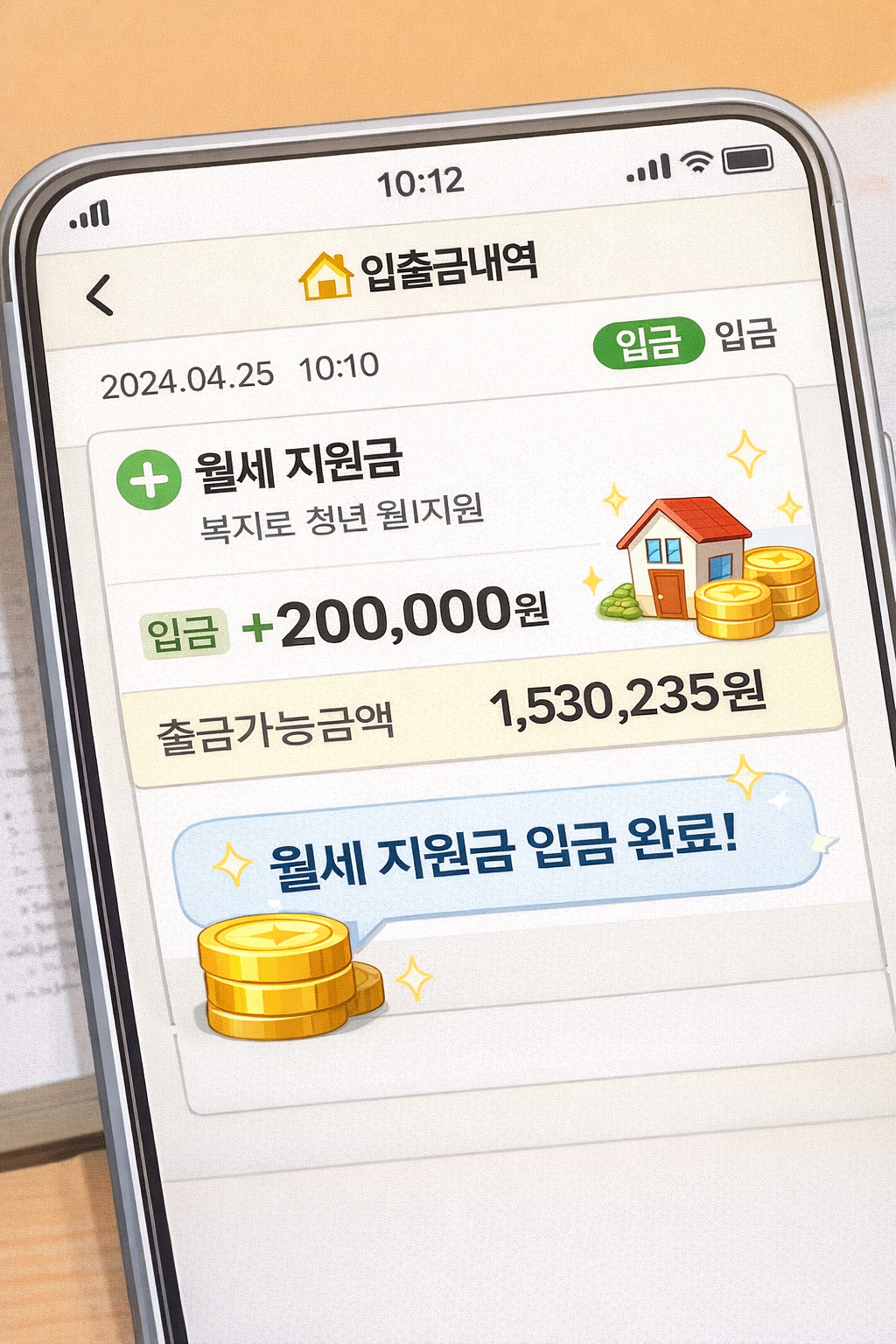 월세 지원금 입금 알림